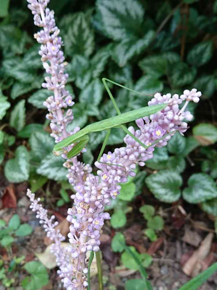 ヤブランとカマキリ
