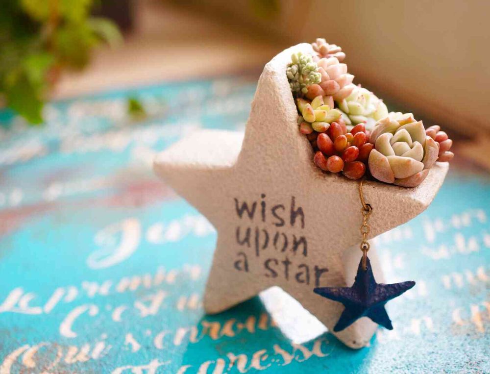 kacoちゃんから頂いたお星様鉢にミニミニ多肉ちゃんを寄せてみました。