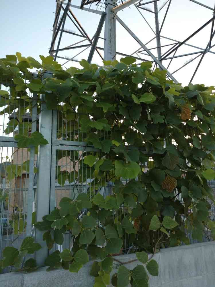 これは皆さんおっしゃるようにクズ(葛)です。葛湯や葛根湯でお馴染みの有用な植物で、徳島県が試験的に栽培を試みたりしています。一方で、あまりに旺盛な繁殖力から、手強い雑草として恐れられてもいます。