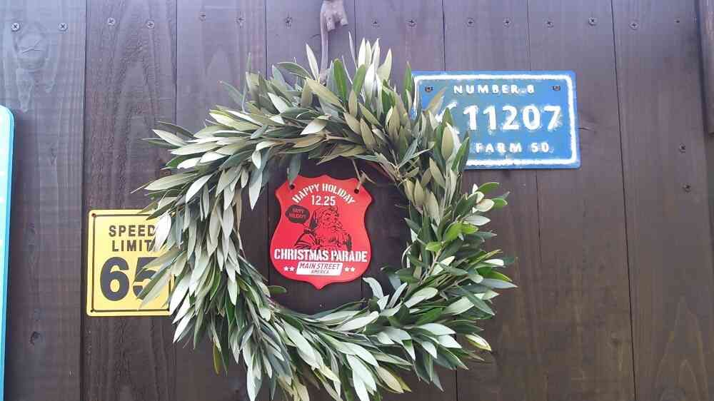 昨晩、夕食後は、オリーブの木を少し剪定したので、リースを作りました♪