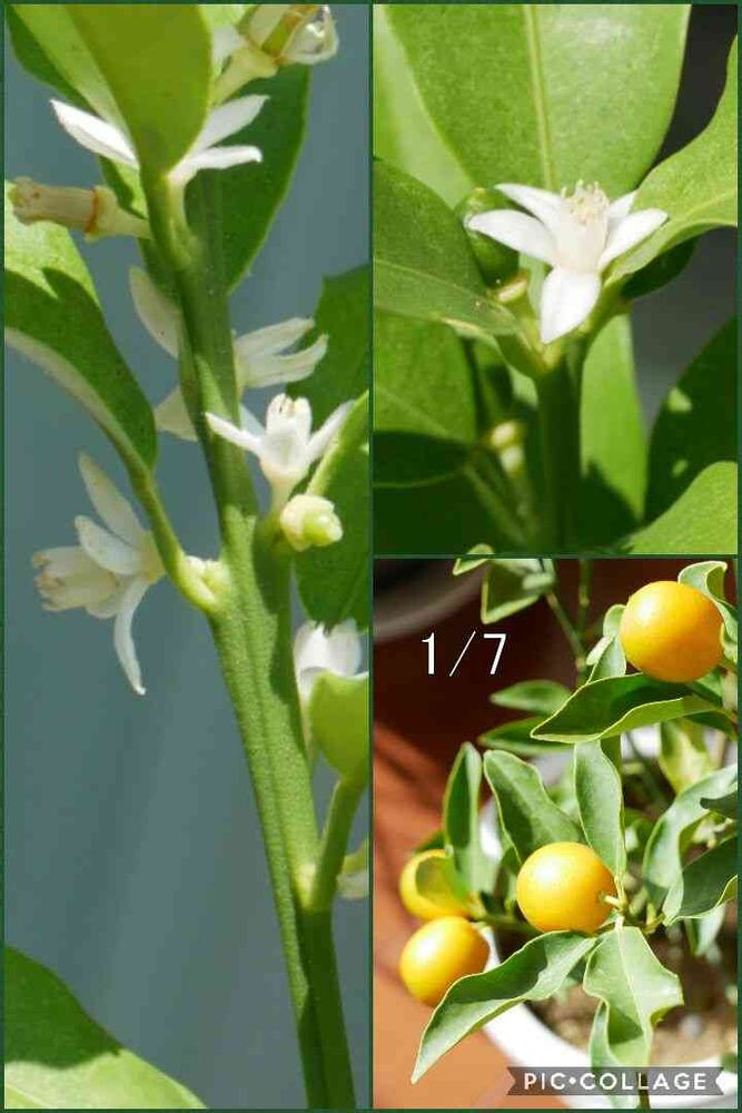 去年買ったばかりの若いキンカンの木に花が咲いています。冬には実7,8個(1/7撮影)、大切に食べました🎵