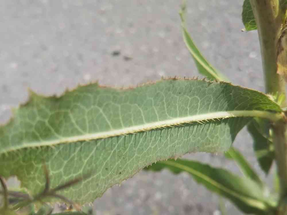 「トゲチシャ」の葉っぱの裏、長いトゲトゲが若干痛い(;つД`)