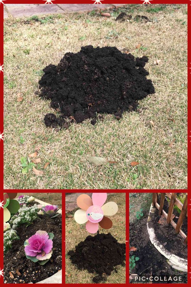 最近庭のアチコチに出没してて...とうとう花壇も被害に合いました。100均風車じゃモグラ避けは無理かな?(^-^;💦