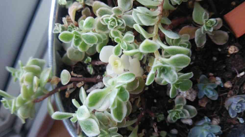 覆輪丸葉万年草の中に真っ白さん発見☆