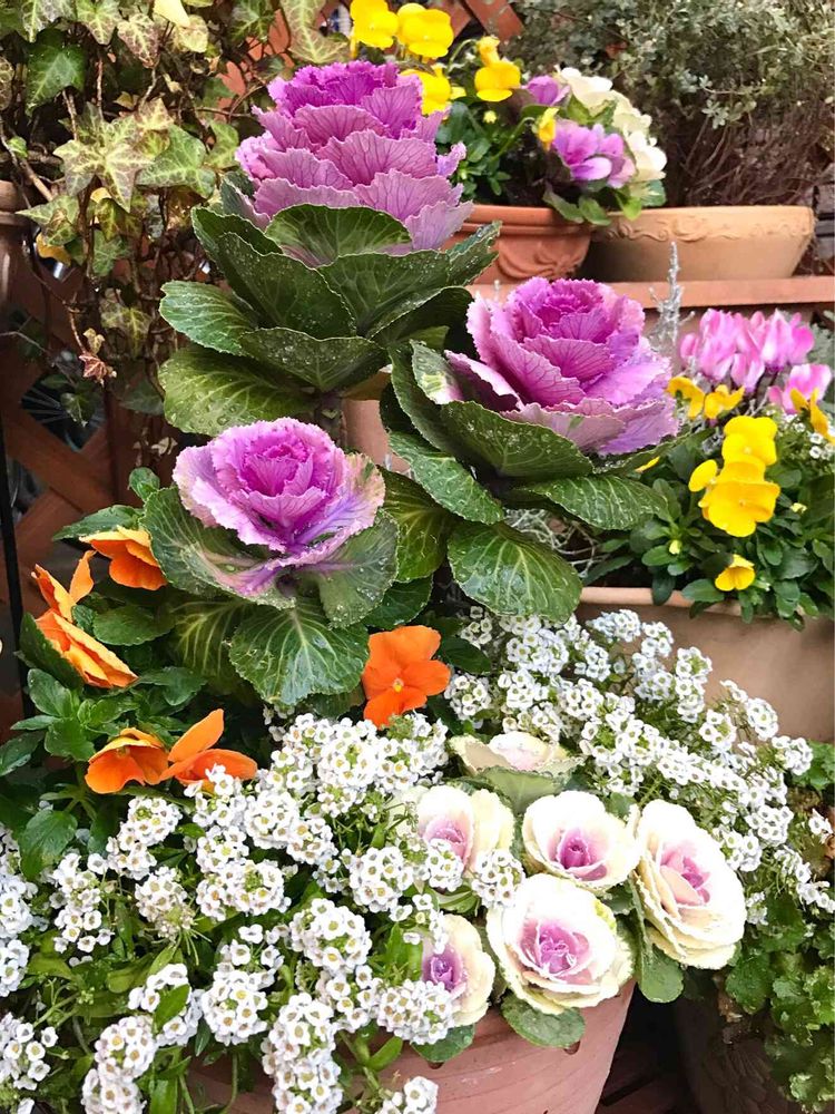 アリッサムもモリモリだし、葉牡丹もエレガントだわ💕