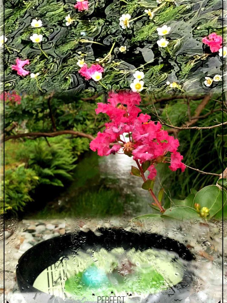百日紅の花が梅花藻の上に*॰¨̮ ♡昨日の画像です🍀