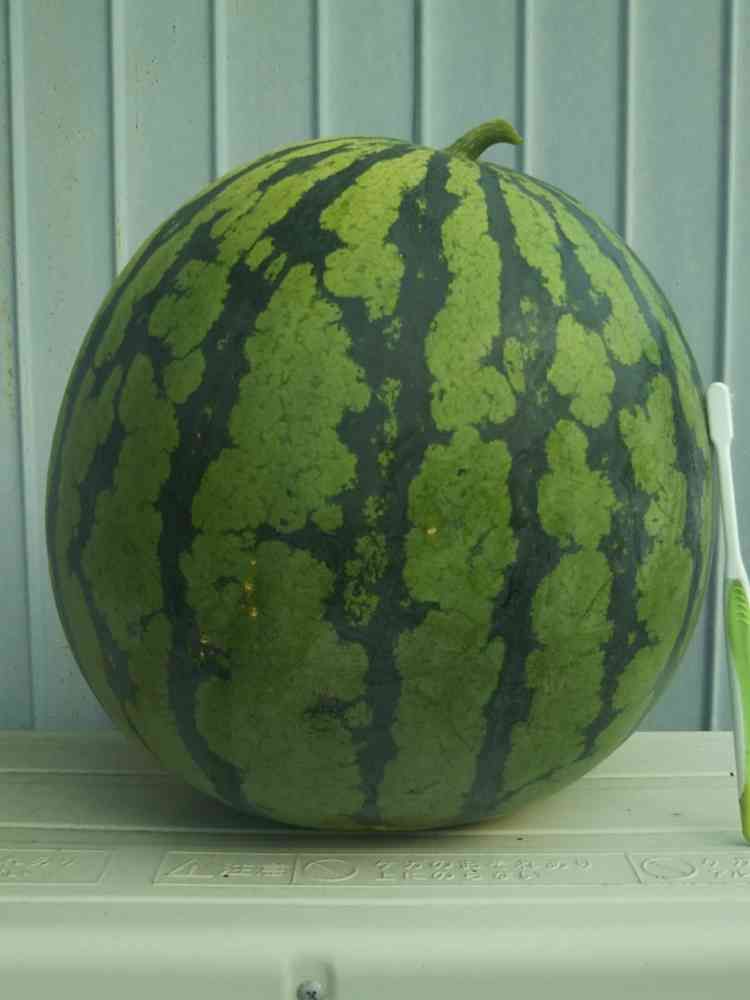 一昨年は枯れて、昨年はもうちょいのところカラスに食べられ悲願のスイカさんです。