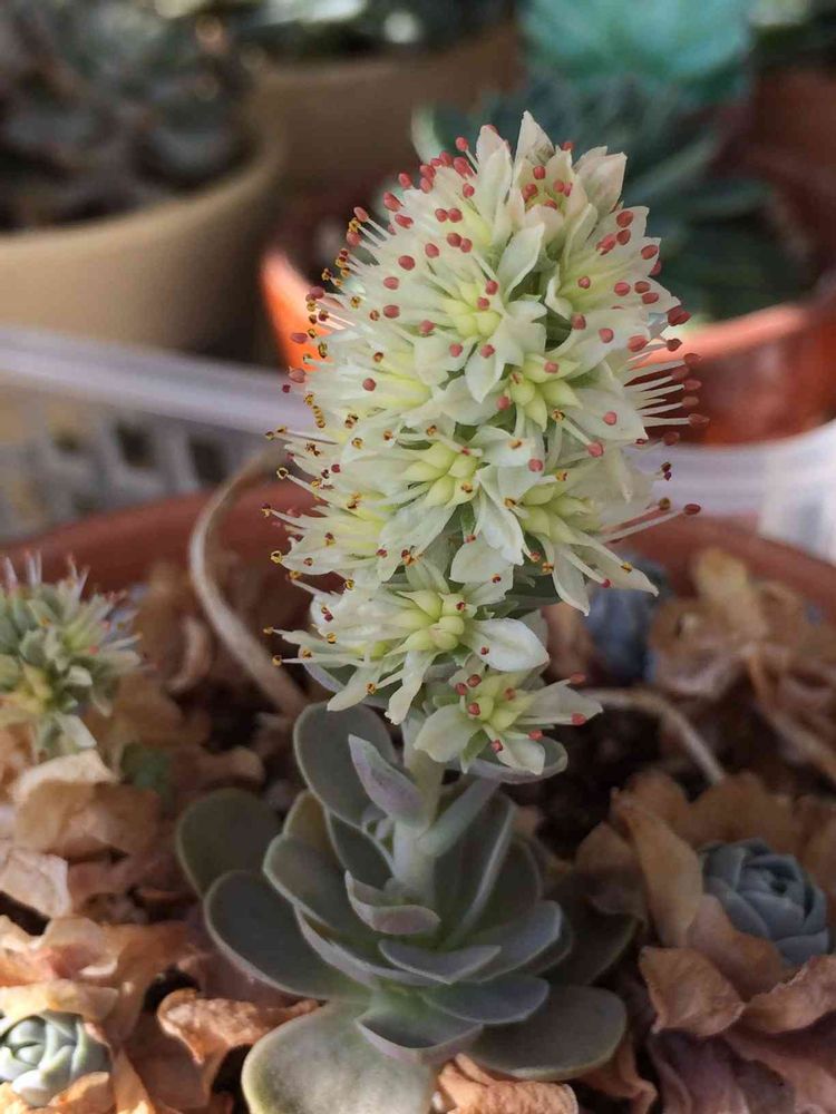 子持ち蓮華、二カ月前も花咲かせて枯らしています😅 枯れることは知っていながら又咲かせてしまいました。
