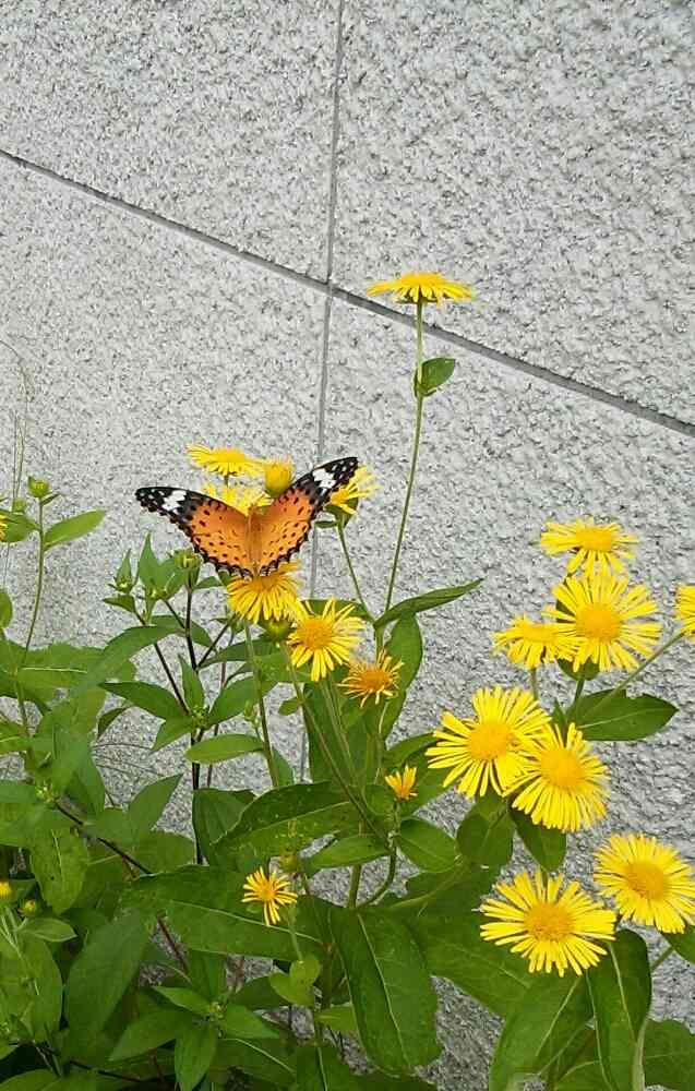 💛の花に🧡の蝶、素敵な瞬間ですね✨