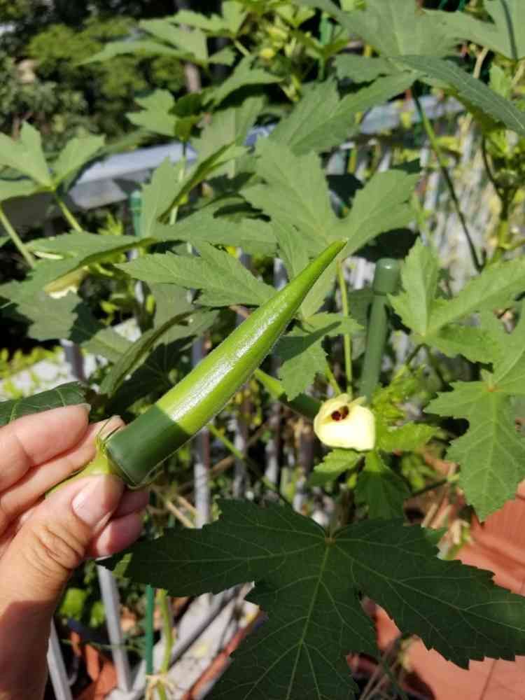 うちのオクラ16cmなっても柔らかいんです。なので欲張ってちょっと大きめの収穫に❗