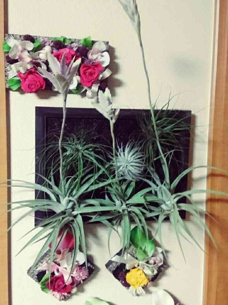 A4フレームに入った チランジア着生です!花付きカクティコラがお気に入りです~