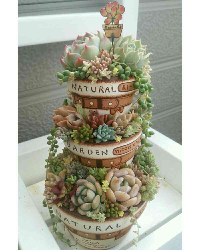 凄〜〜〜い多肉植物の寄せ植えケーキ🧁みたいですね‼️