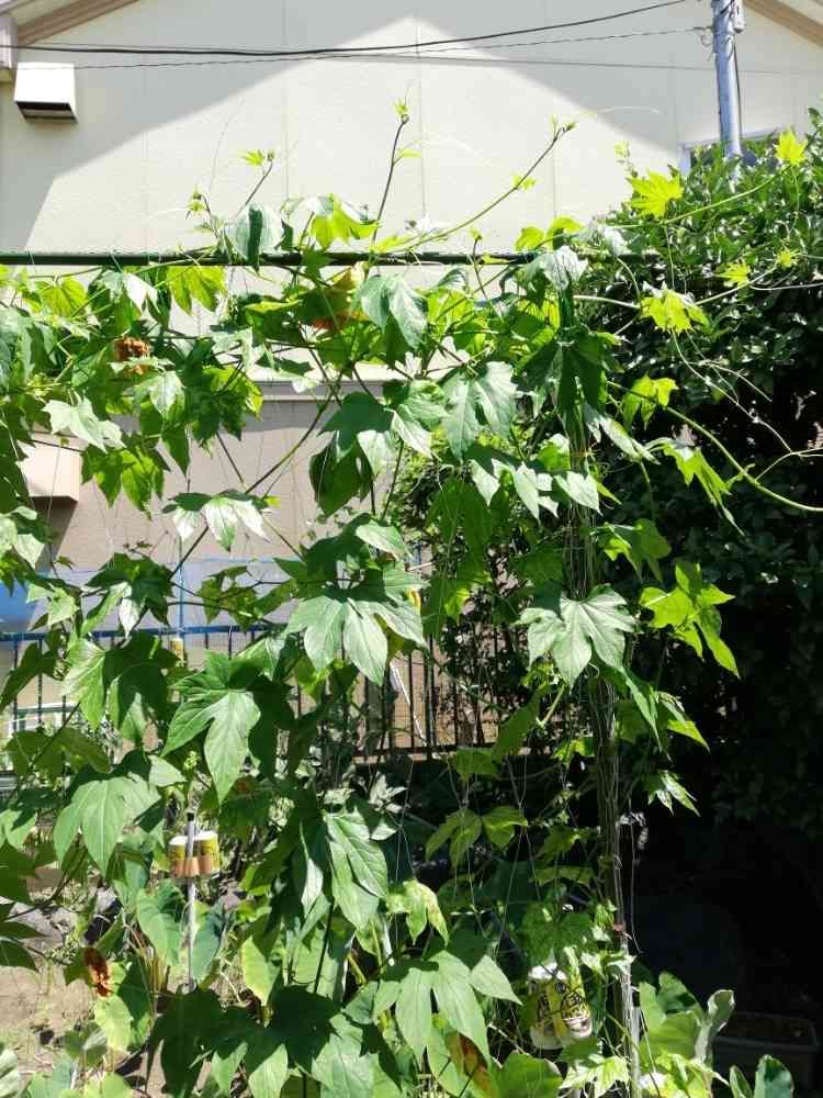 3株だけと 決めていた スズメウリ こぼれ種がまた見つかり 合計5株を ネットに誘引 8月の半ばには 多分 ごちゃごちゃになっているでしょう😥 とにかくどこまでも伸びるのです この弦は…