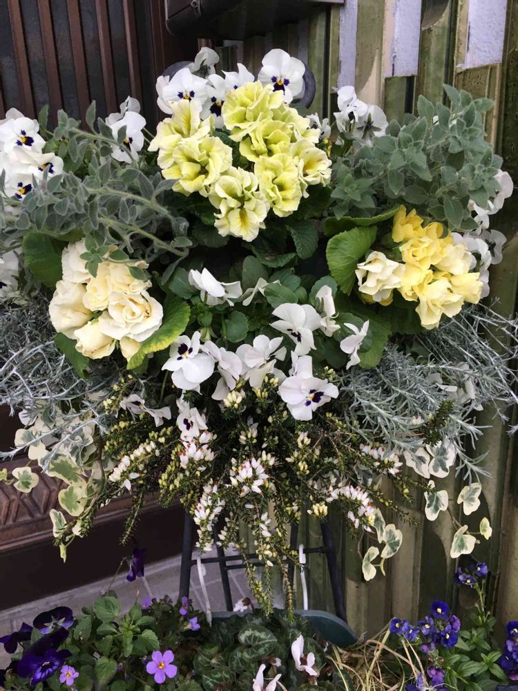 プリムラとビオラのハンギングバスケット💕今年植えこむ最後のハンギングかな?
