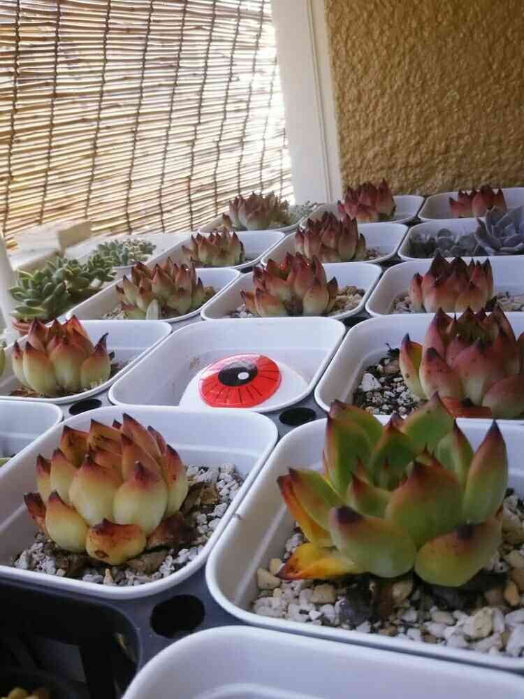 多肉を、昼夜守ってくれる目玉オヤジ、