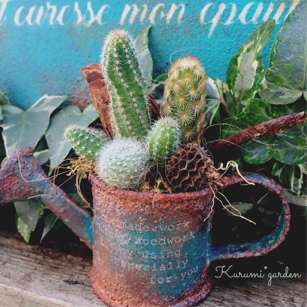 くるみガーデン くるみ ⃰ さんのアプローチ,アイビー,サボテン寄せ植えの投稿画像