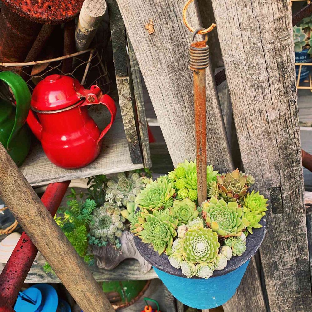 センペルMix寄せも後ろにちょっとだけ見えてるダイソーの切り株鉢の寄せ植えもまだ綺麗です😊