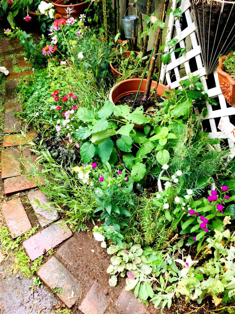 お花も少なくごちゃごちゃな小道を、誉めていただき恐縮です。