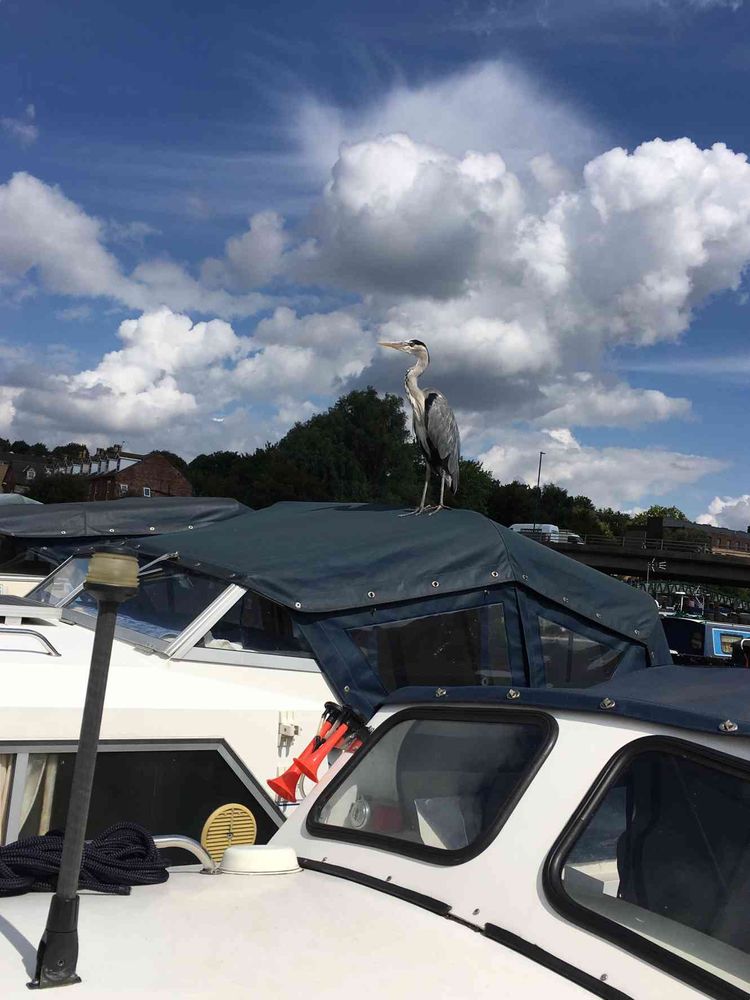 マリーナでどなたかのボートの屋根に乗っかっていたサギが、夏空を背負って非常に恰好良かったので。