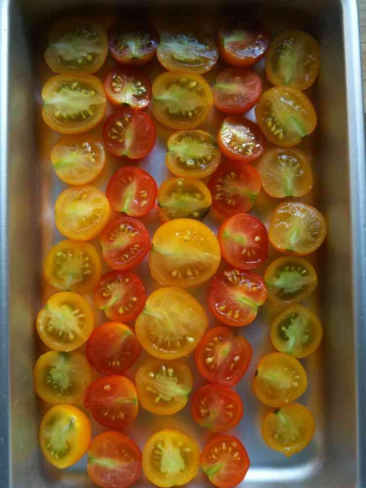 初めてドライトマトを作ります。(ドキドキ)とりあえず3日ほど窓際で天日干ししてみます。