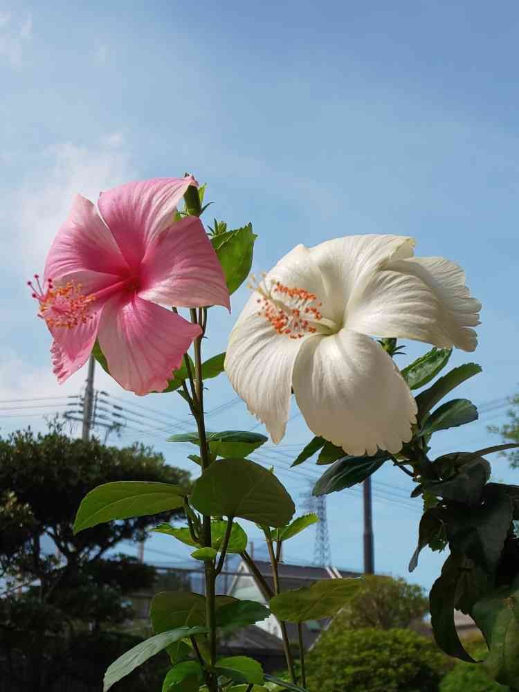 今日のハイビスカスヘップバーンホワイトちゃん&ピンクバタフライちゃんです😆🎵🎵