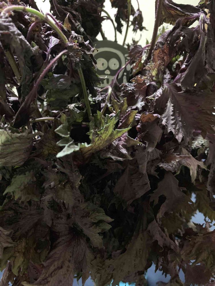 一昨日、収穫した赤紫蘇、水上がりが悪いのか、悪魔のようになっています。💦👿
