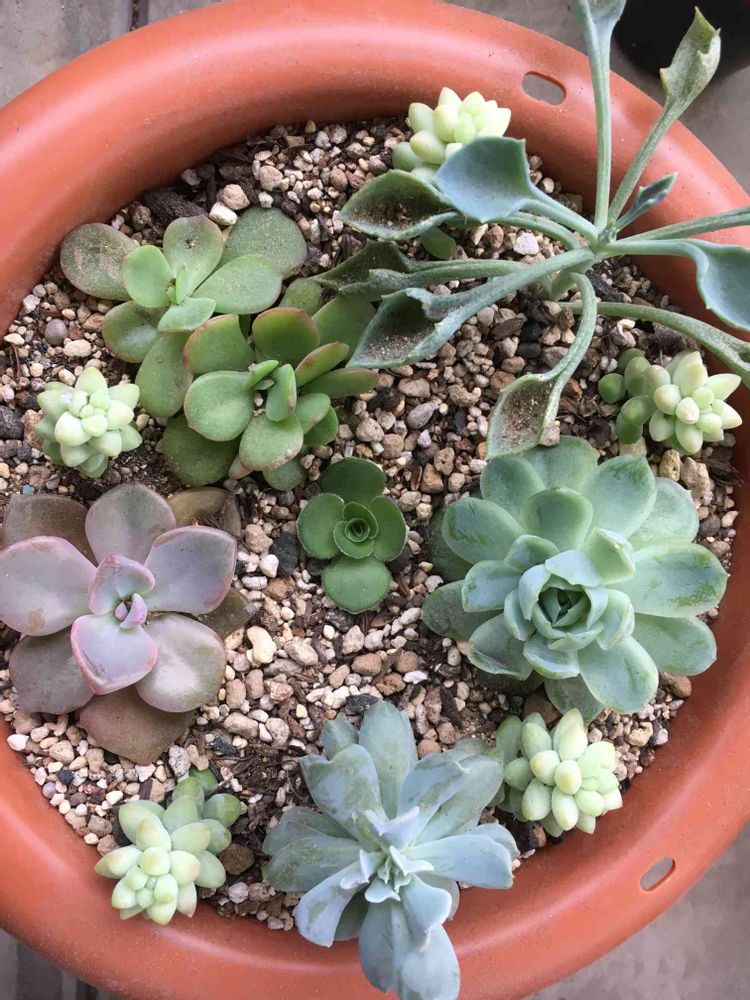 強風でやられた多肉ちゃん達を寄せ植え〜