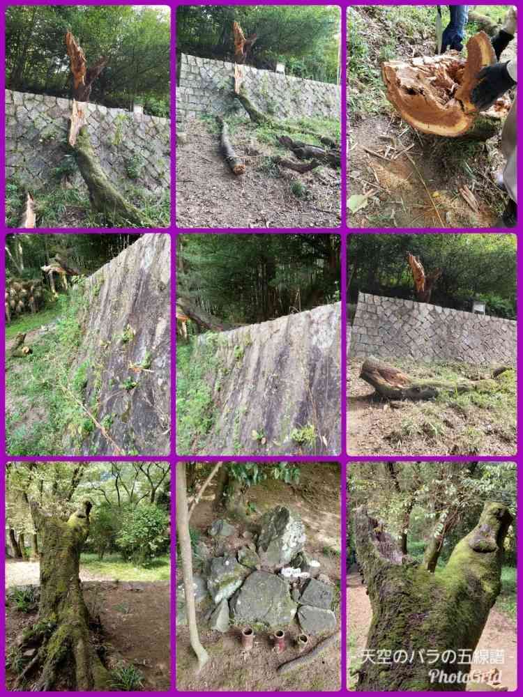 我が町の推古桜「推古天皇が植えたとされる伝説の桜」が豪雨で折れてしまったので、世話人のうち時間がとれる者4人が残骸を片付けると共に、周囲の清掃をしました。石垣の草もすべて抜きました。
