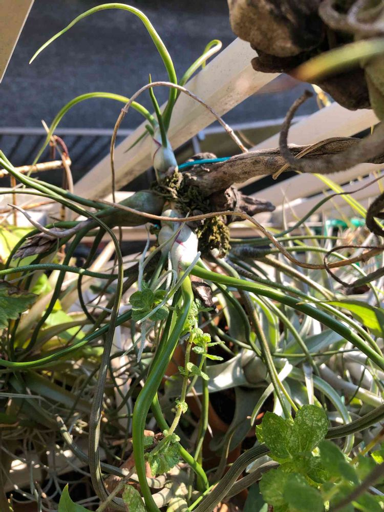 去年の春に出てきた子株がもうこんなになりました。壺部分がやたら白銀色。