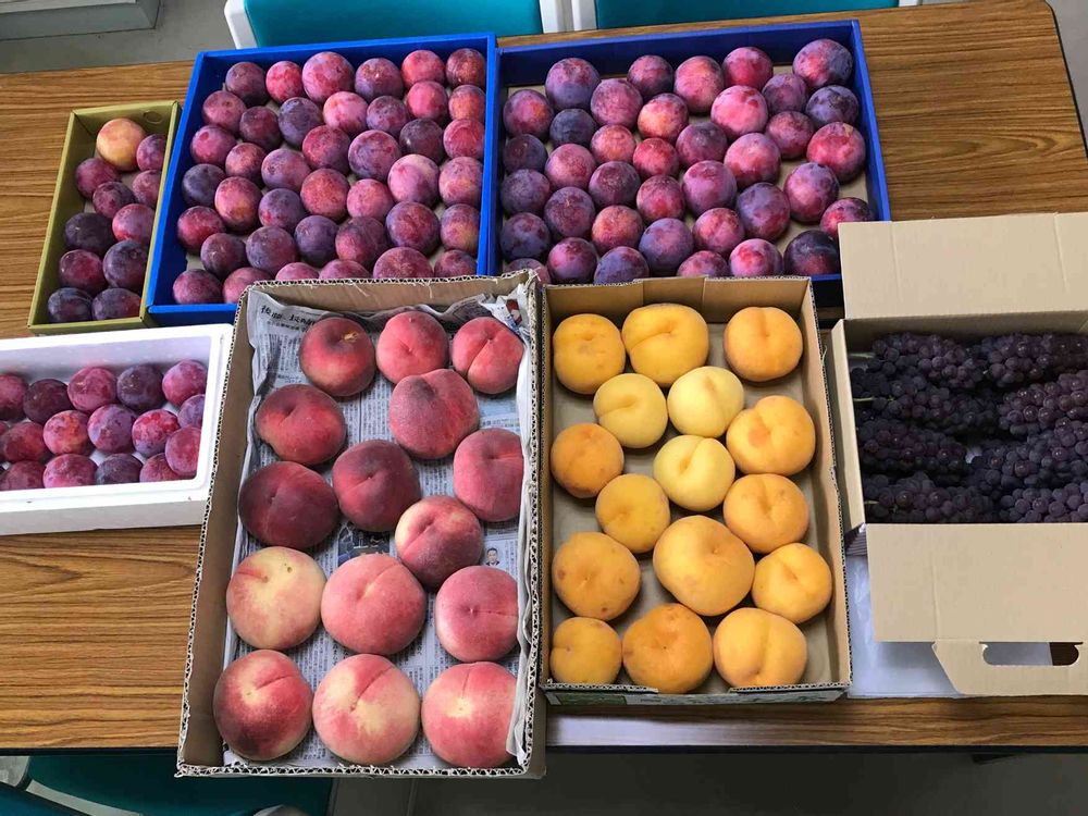 有機肥料でやっている農家さんの桃とスモモ、上司がもらったというデラウェア🍇と勢揃い😍