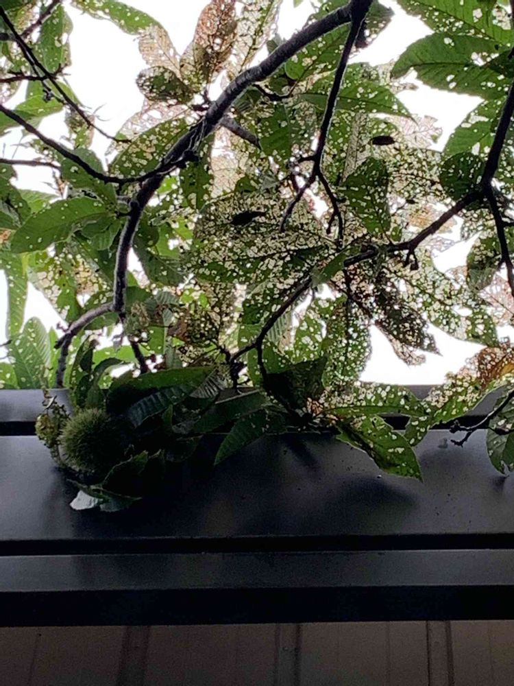 (○´U`○)ぉはょ〜縁ちゃん😊 栗の木に🌰みのもんた? あらら〜大変💦 北海道も栗の木はあるけど 本州みたく 美味しくないワ。この栗の木🌰どうなるの?栗はなる? 葉っぱは虫付いても美味しい栗いっぱい出来たらいいね👍🎵