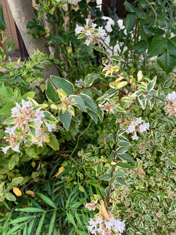 セミの集合住宅と化しているトネリコの足元のアベリア。目立たないながら白い花が沢山咲いてくれてます。