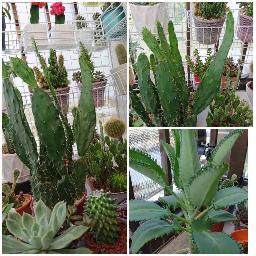 右上のサボテン🌵私の手に負えない🌵に良く似ています。もう枯れそうだったので地植えにしたらとんでもないことになってしまった。