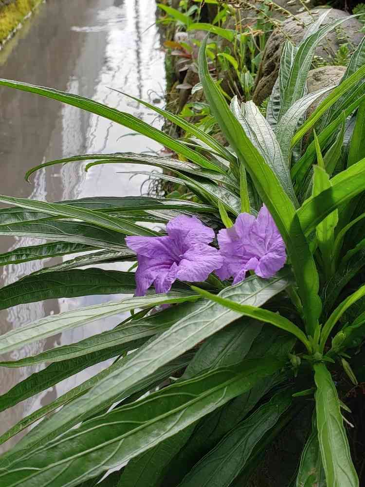 スイスイと長い茎のはその辺に雑草のごとく生えまくってますが、こんなところに茎もなく知らぬまに育ってました。家の真裏のちっさな用水路の石垣です!この花は一日花。明日にはもういません…。