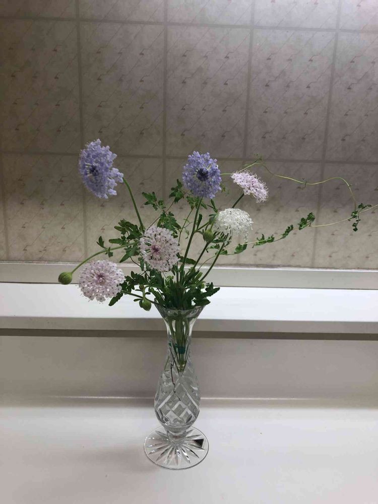 四月にタネを蒔いたディディスカスが花を付けています。優しい雰囲気のお花です。