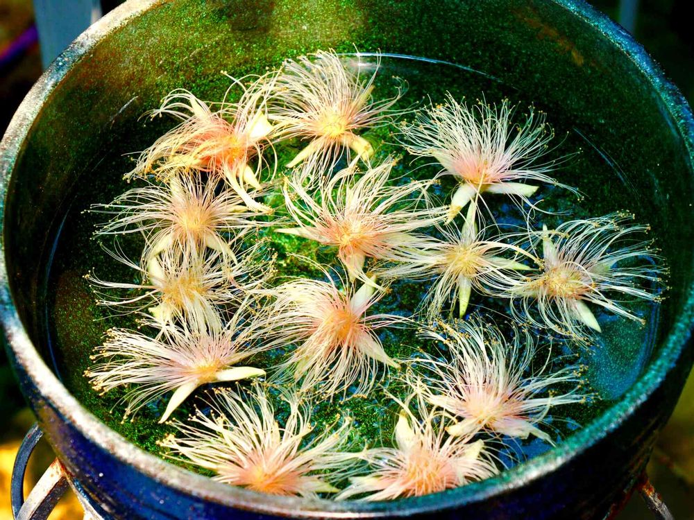 熱帯植物館で、夜の間に咲いた花が下に落ちていたのを見た事があります。