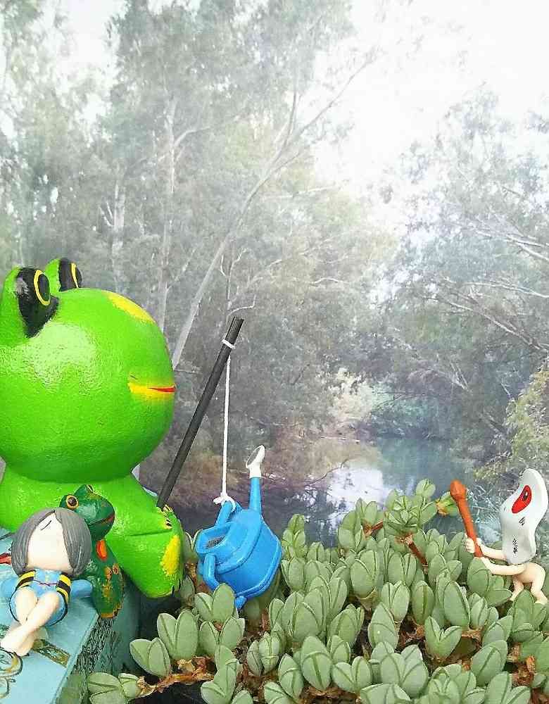 🐸が釣りしてる⤴︎⤴ジョウロ(笑)