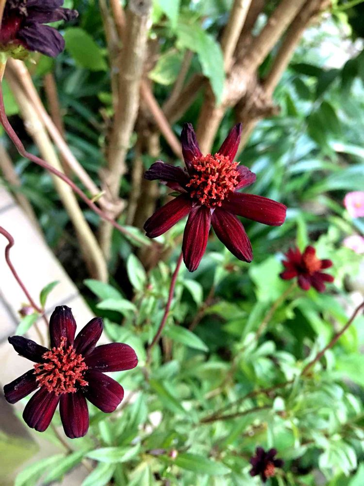 立秋も過ぎましたが、まだまだ暑いですね。今朝のお花は、チョコレートコスモス四季咲き。普通のコスモスより花は小さめです。チョコレートの香りがする、そうです。