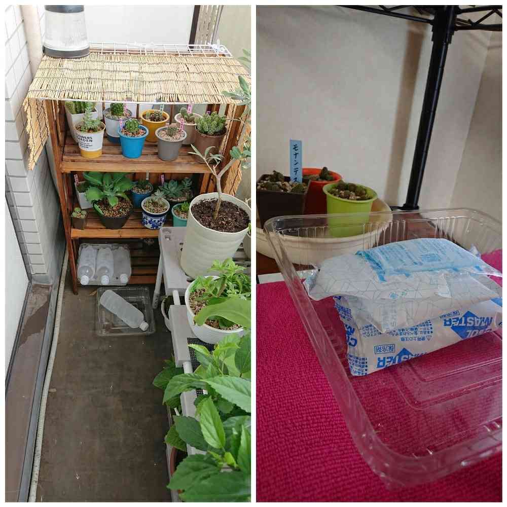 今日は、私が部屋にいるので、部屋のペットボトルはなしにして、保冷剤だけ。その分をベランダにまわしました。