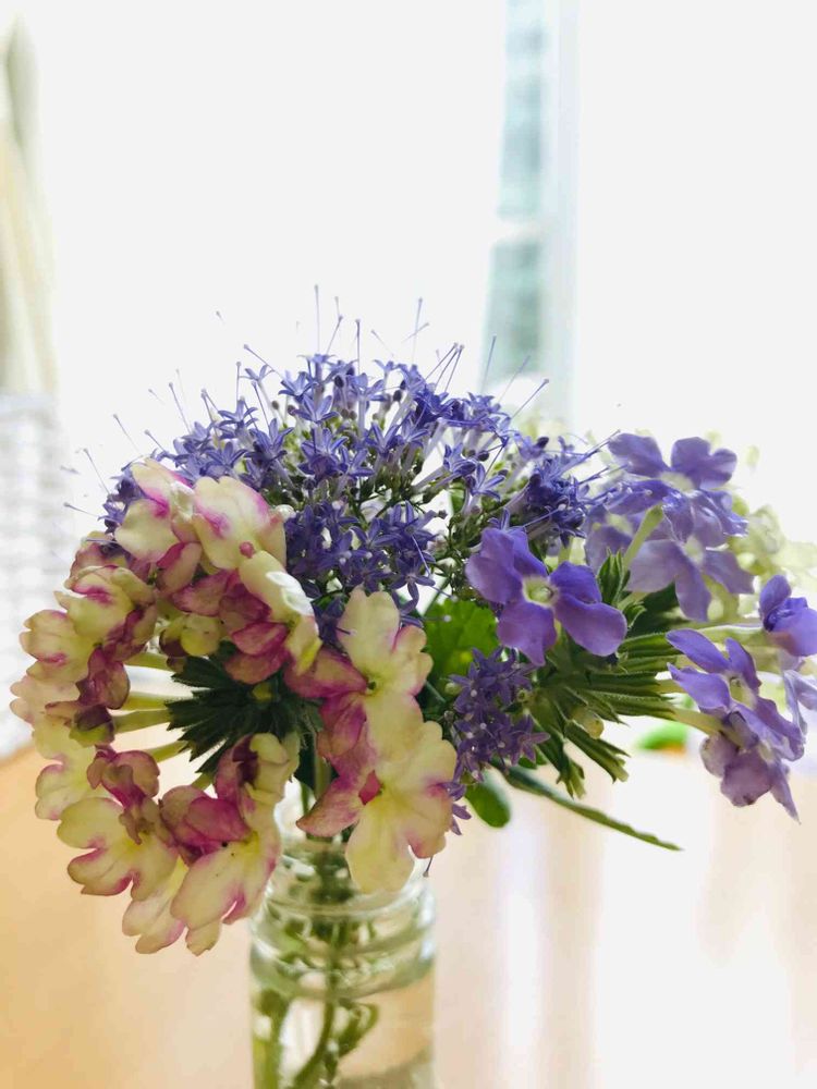 庭の作業が終わってやっとひといき🍹☺️💦 庭で摘んだお花を飾りました🍃
