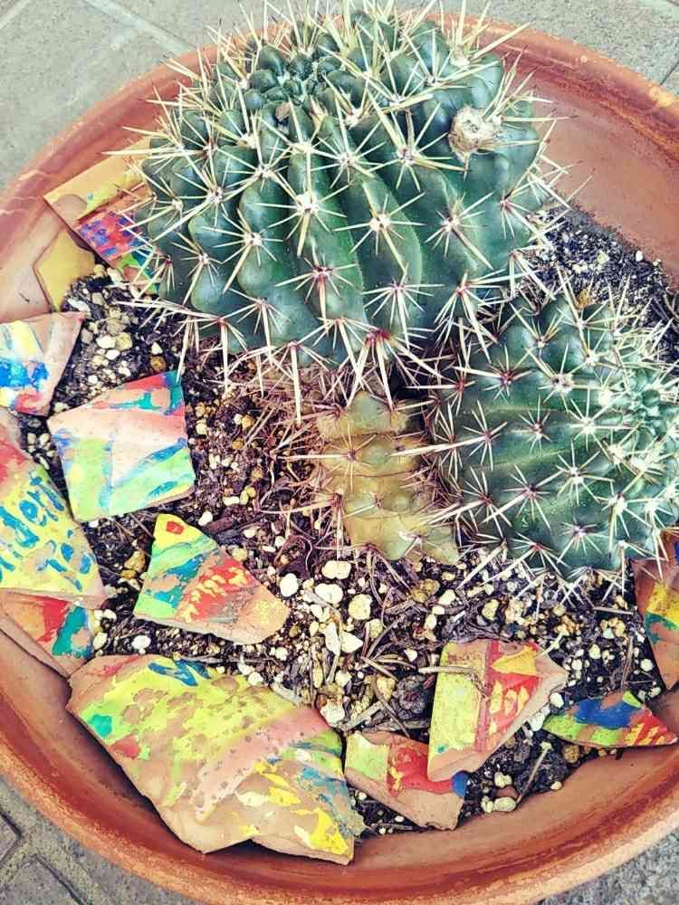 鉢は粉々…🌵も無惨に潰れちゃって…