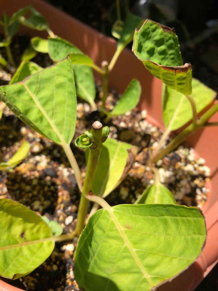 葉っぱ焼けしてるけど芽が出て良かったなぁ💦