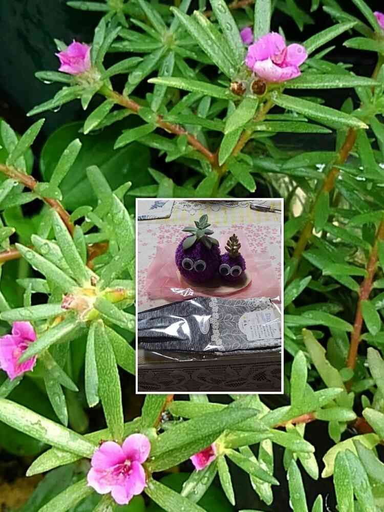 息子夫婦から可愛い多肉頂きました😃💕スマホも使える手袋もセットです✌💕姫松葉ボタンがあちこちで咲いて可愛いです💓💓