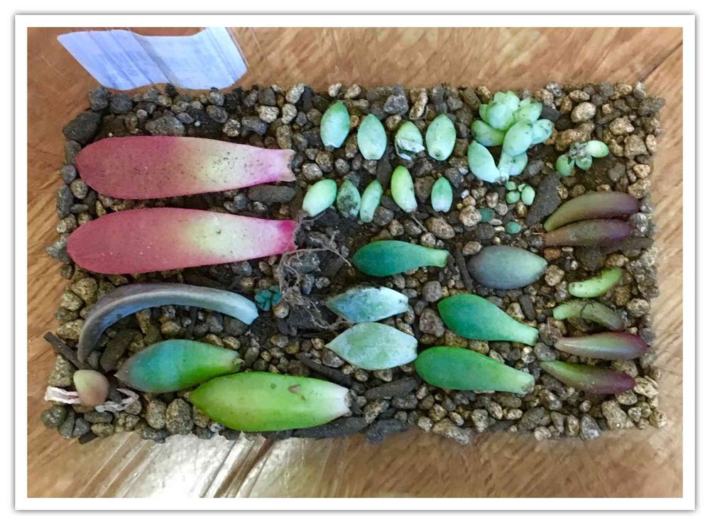 でも❗️しばしメゲた後は、皆さんの真似して、折れちゃった葉を並べてみました。