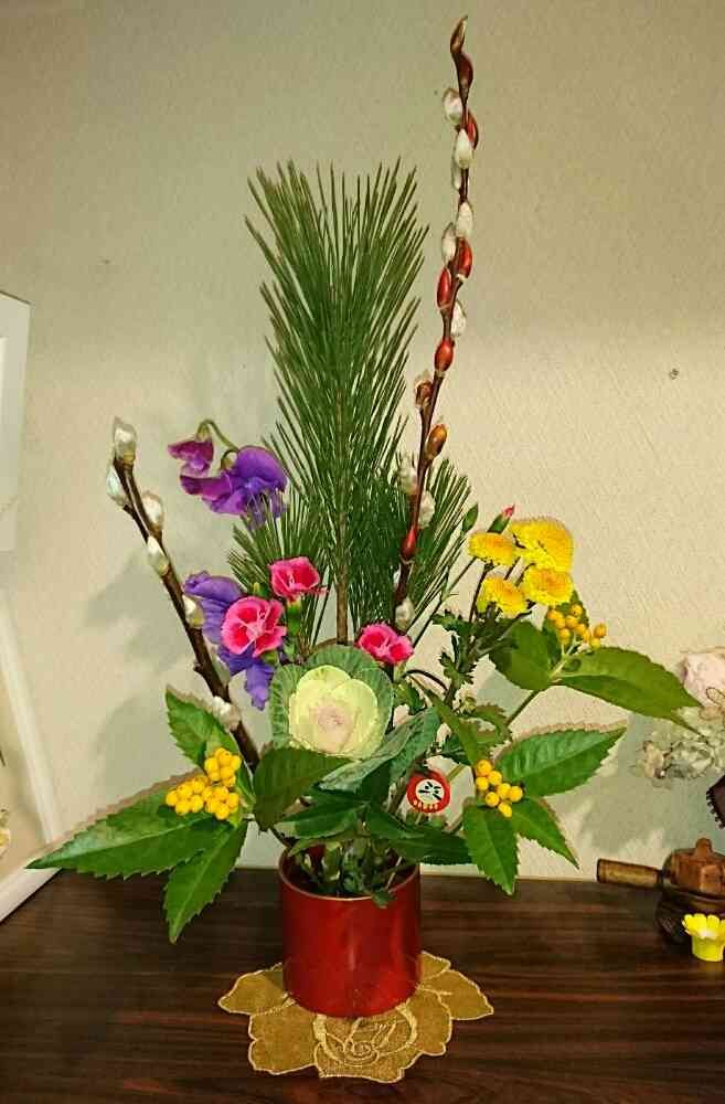 お正月用のお花を生けました。どうも引き算が苦手。。