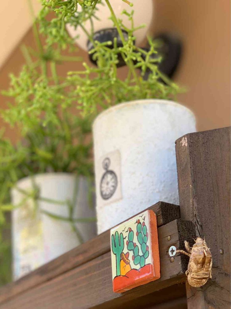 なんかほっこりと可愛いpicですね☺️台風が近づいて来るけどセミさん大丈夫かな⁉️多肉🌱のバッチ⁉️タイル⁉️すっごく可愛い(⁎˃ᴗ˂⁎)