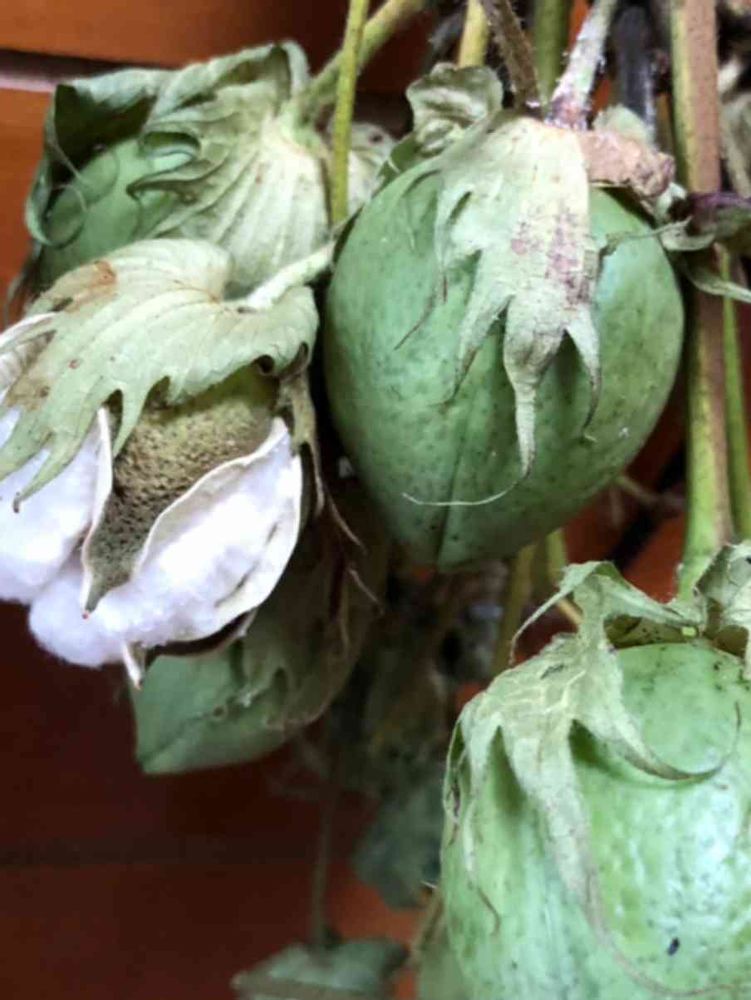 実が弾けて綿がとれます😍今年は長雨で成長伸び悩み😢
