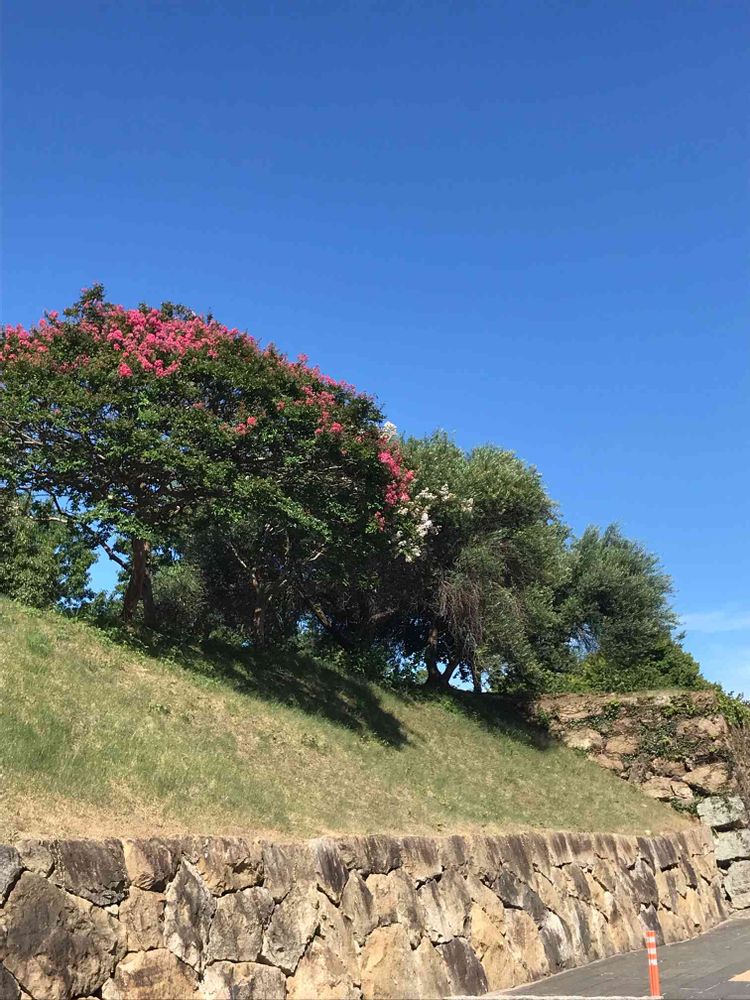 回り道してここを通りががったら、真っ青な空とサルスベリの木が素晴らしくて自転車を停めてはパシャリ