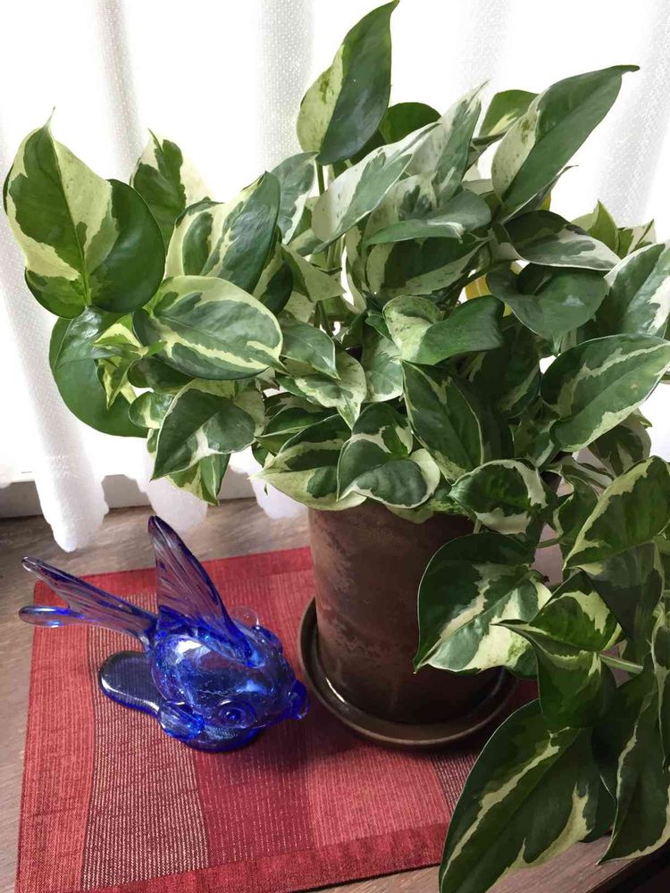 部屋の三角出窓の🌿ポトス🌿です。😊