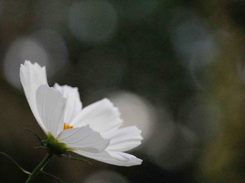 純白のコスモスさんと奥の光が玉ボケになっていて美しいですね(✿︎´ ꒳ ` )♡︎